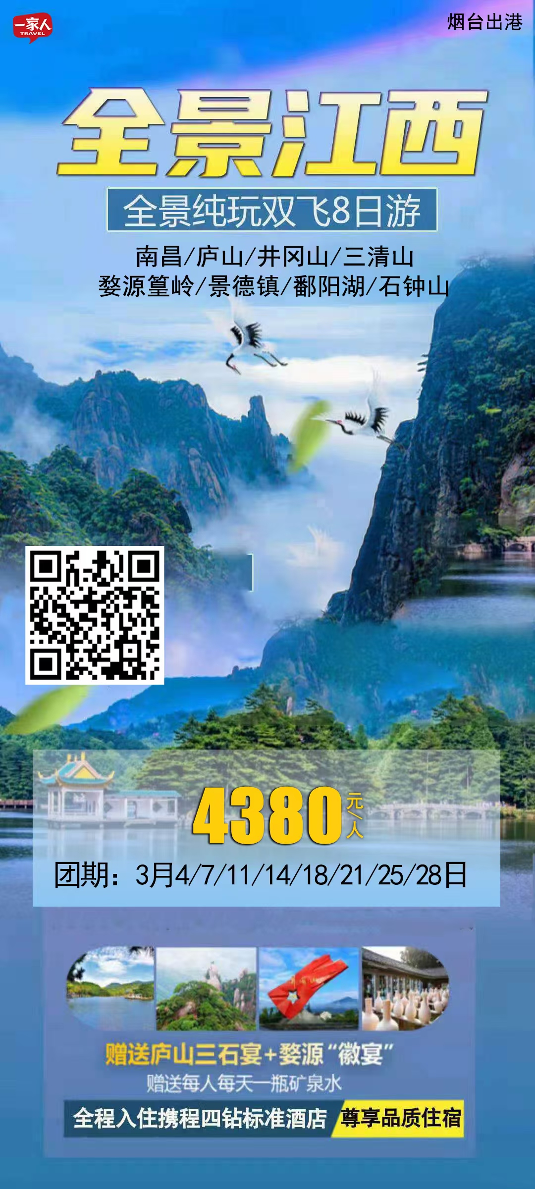 3🈷️ 双飞8天💯纯玩高品【全景江西】