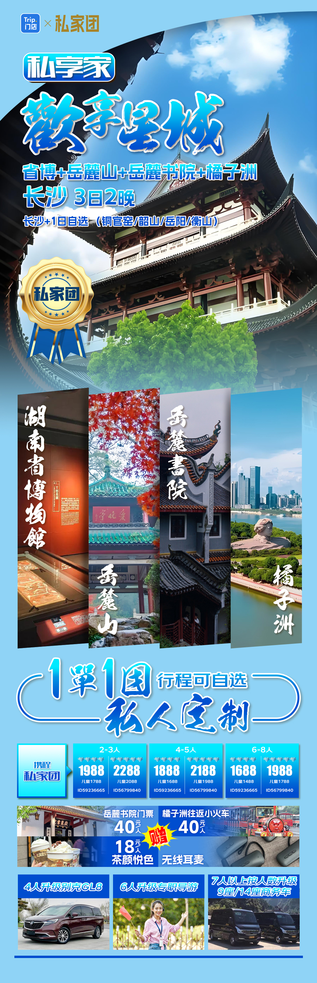 线路名称:私享家·欢享星城 【湖南省博+岳麓山+岳麓书院+橘子洲】3天2晚