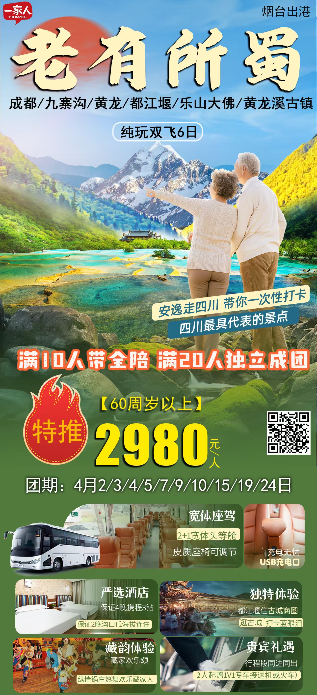 纯玩💯纯玩🔥四川全景老年欢乐夕阳红【四川·老有所蜀】双飞6天