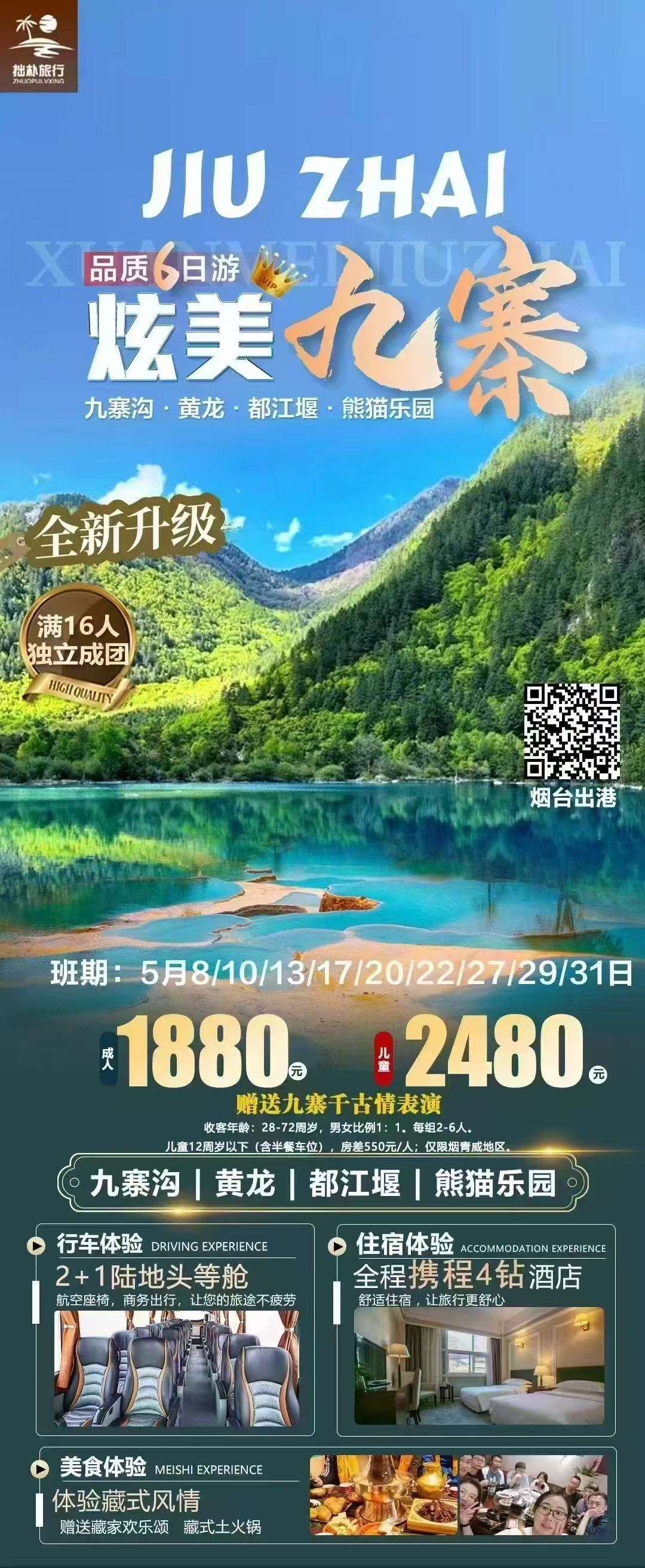 😘😘九寨沟+黄龙+熊猫乐园+都江堰