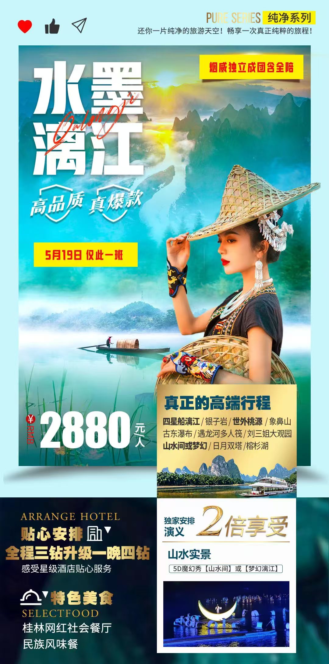 🚢正航四星大漓江游船4小时饱览大漓江全景九马画山,20人民币背景等美景!