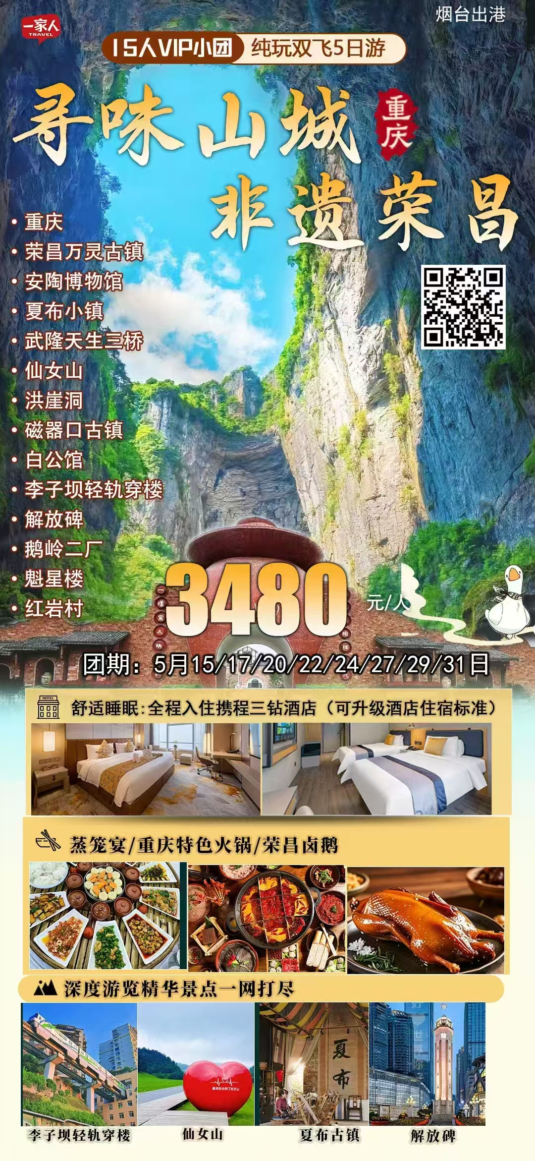 5🈷️15/17/20/24/27/29/31号💝15人VIP小团💯纯玩【重庆·寻味山城·非遗荣昌】双飞5天