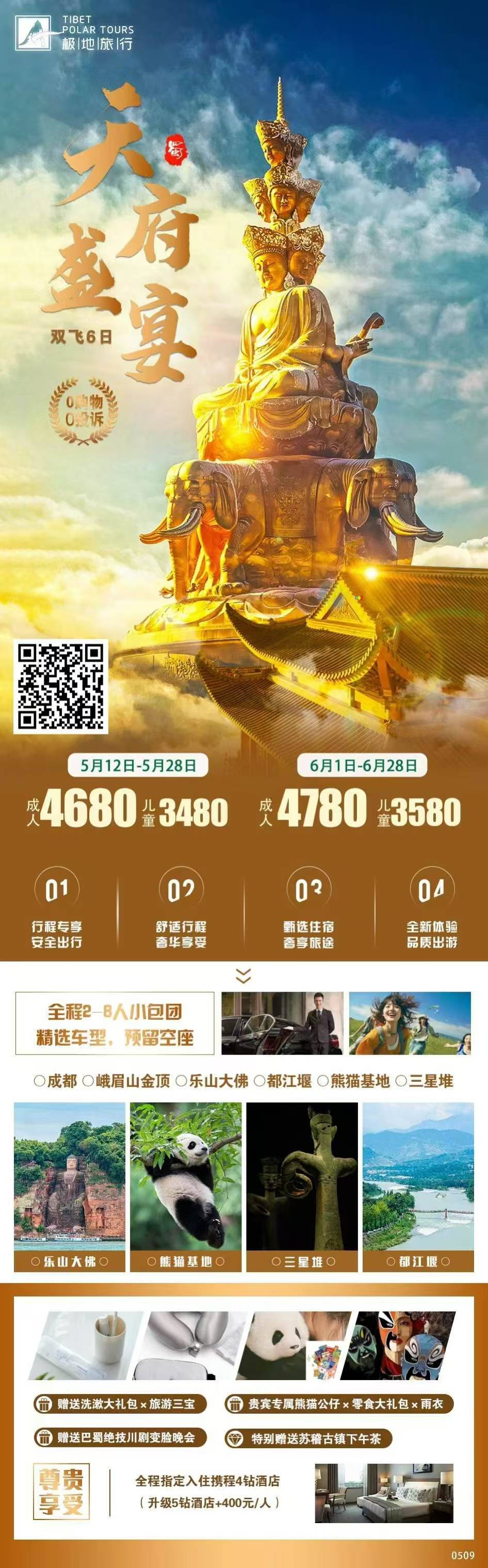 您预订的是:   🌄【天府盛宴成都双飞六天2-8人小包团