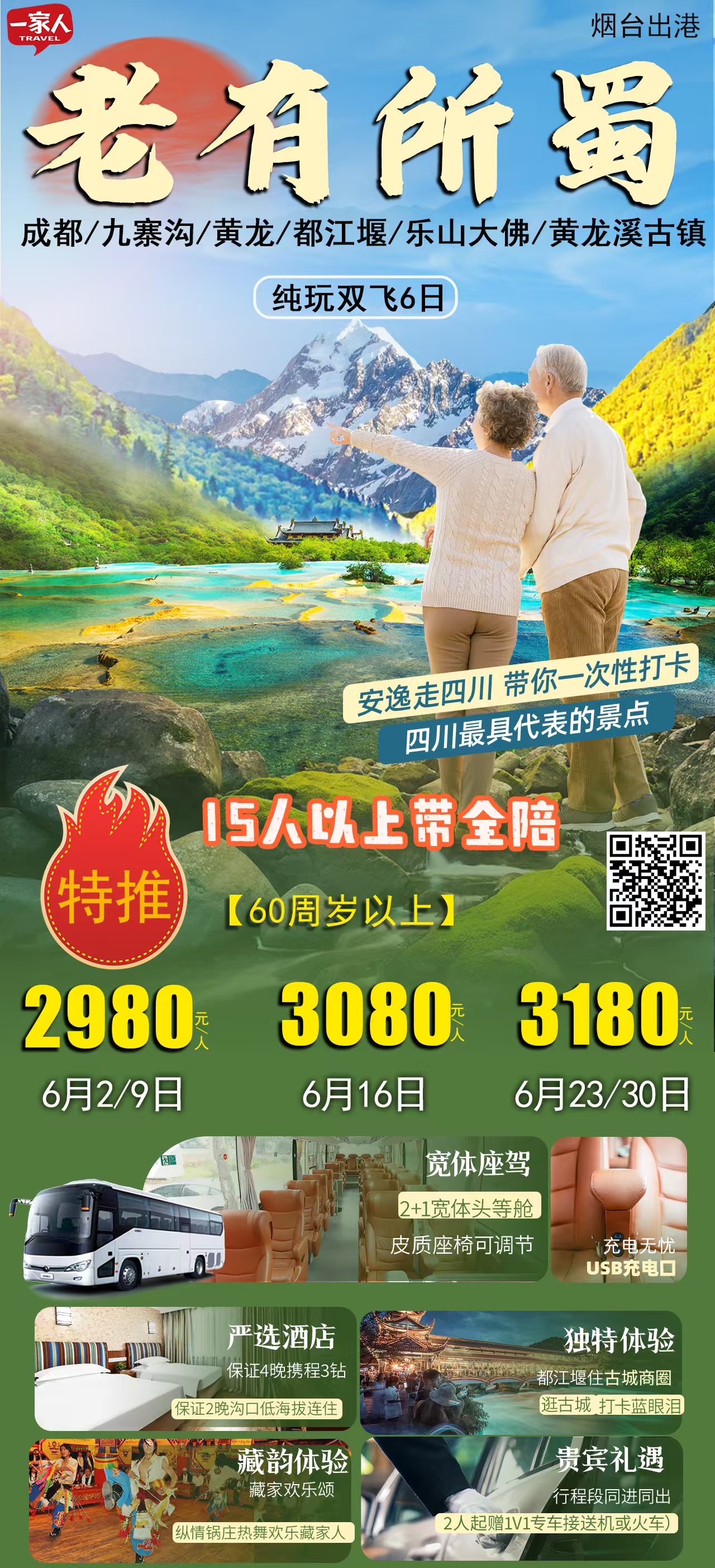 烟威全陪班🚩6🈷️2/9/16/23/30号💕纯玩💯四川全景老年欢乐夕阳红【四川·老有所蜀】双飞6天