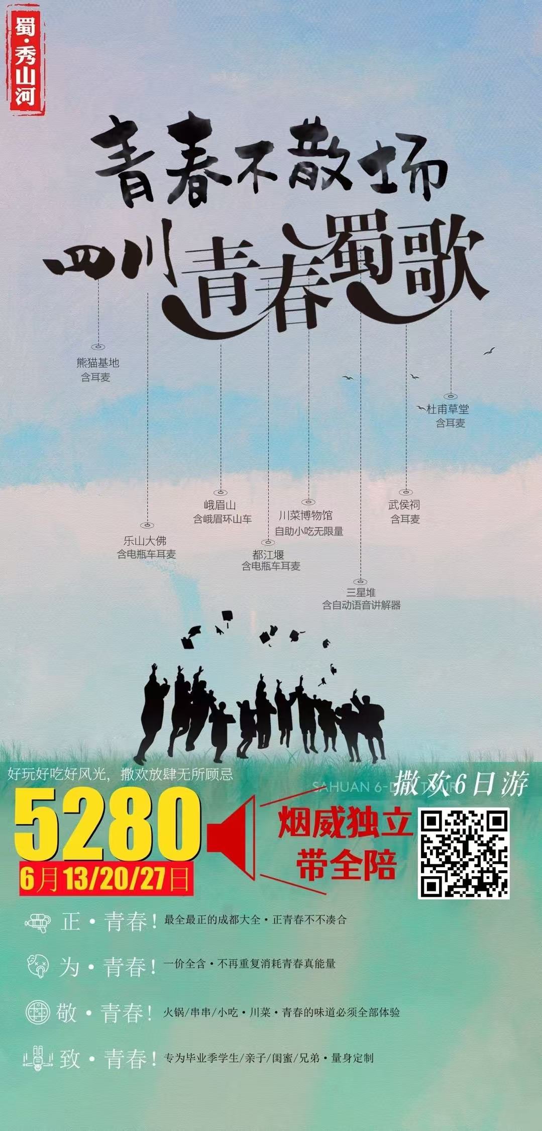 线路名称:【蜀.秀山河】6🈷《青春蜀歌》成都毕业季6日