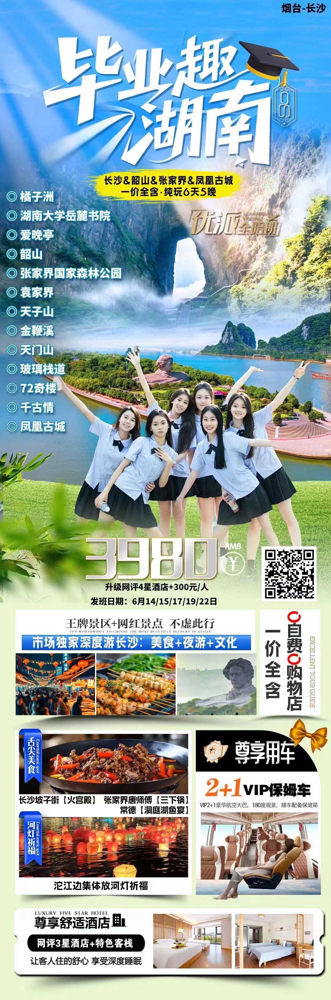 线路名称:【毕业趣湖南】长沙韶山张家界凤凰双飞六天