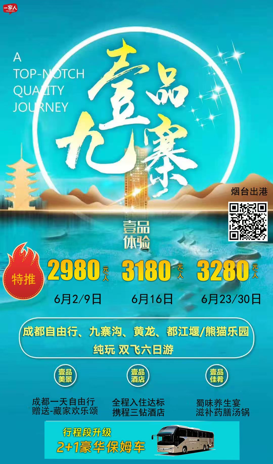 6🈷️2/9/16/23/30号💋品质纯玩💯半自由行【四川·一品九寨】双飞6天