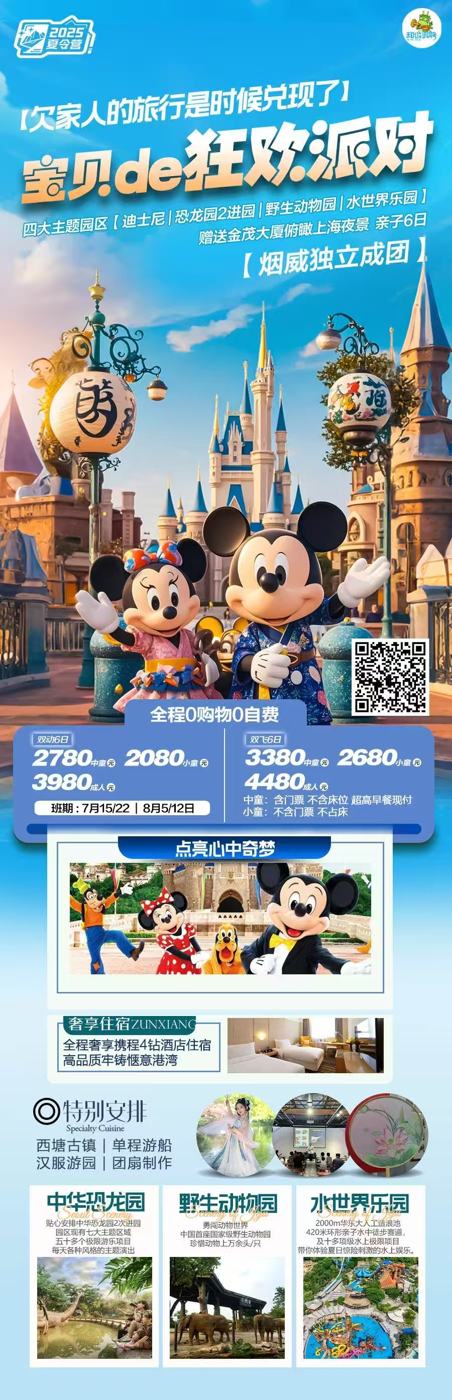线路名称:【给宝贝的狂欢派对】华东迪士尼、恐龙园动物园亲子6天