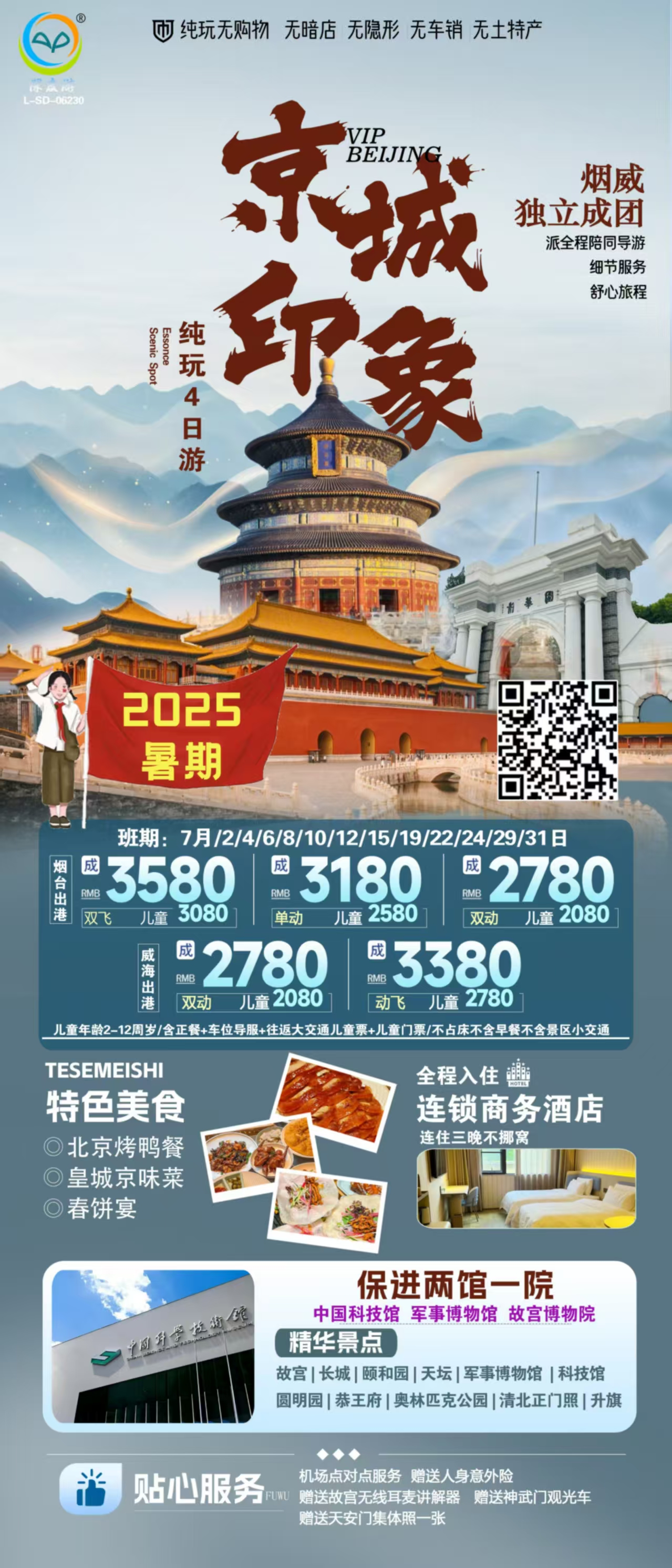 您预订的是:   京城印象 北京纯玩双飞4日游