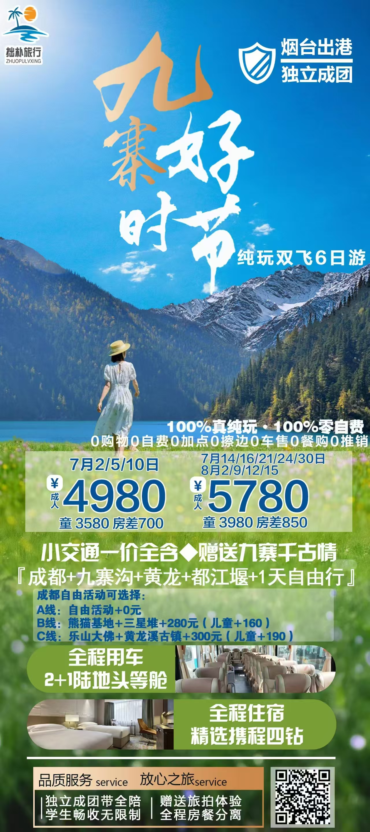 您预订的是:   👍暑期《九寨好时节》纯玩双飞六天