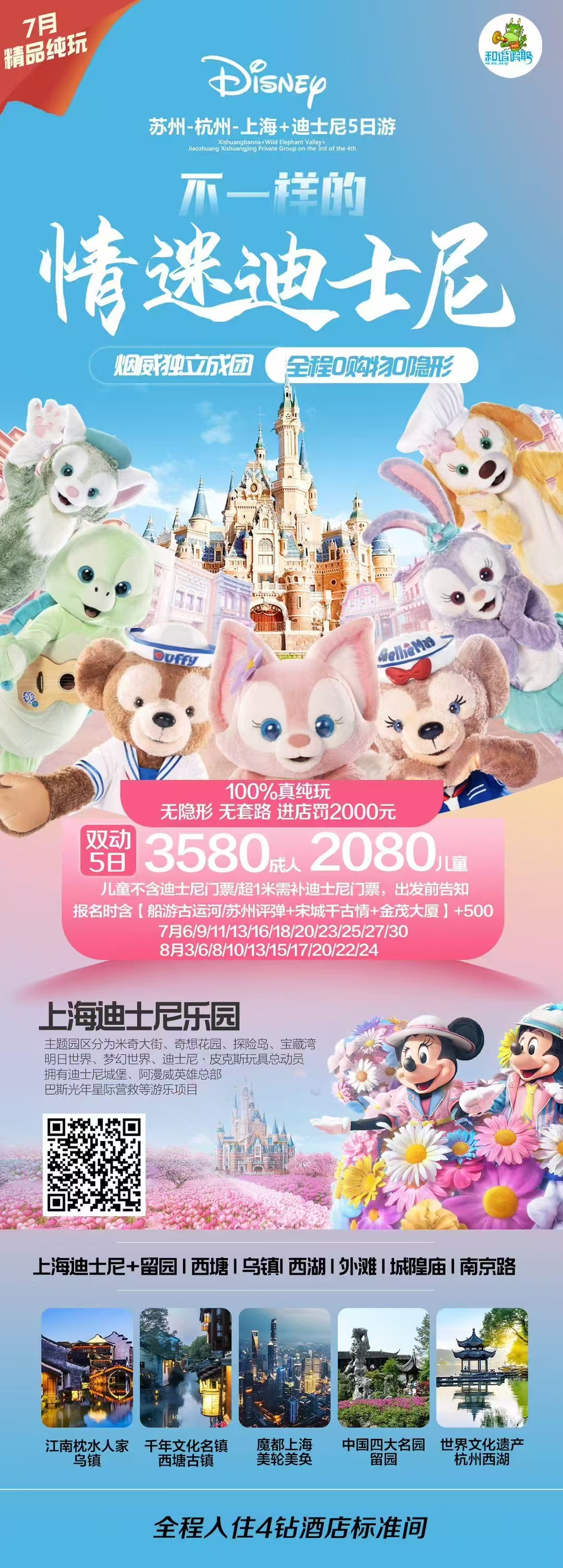 您预订的是:   烟威独立班【情迷迪士尼】双动五天