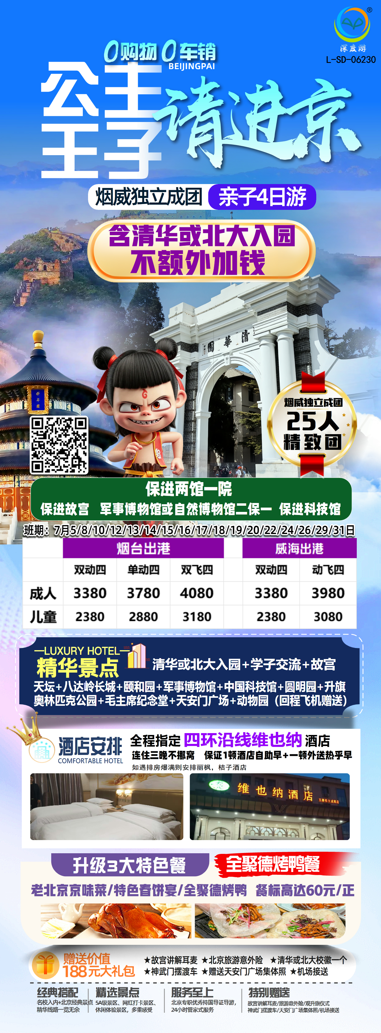 25人精致团,指定入住四环左右维也纳——【公主王子请进京】4日游😄走进清华或北大✅保进故宫!军事博物馆和自然博物馆二保一!保进科技馆!