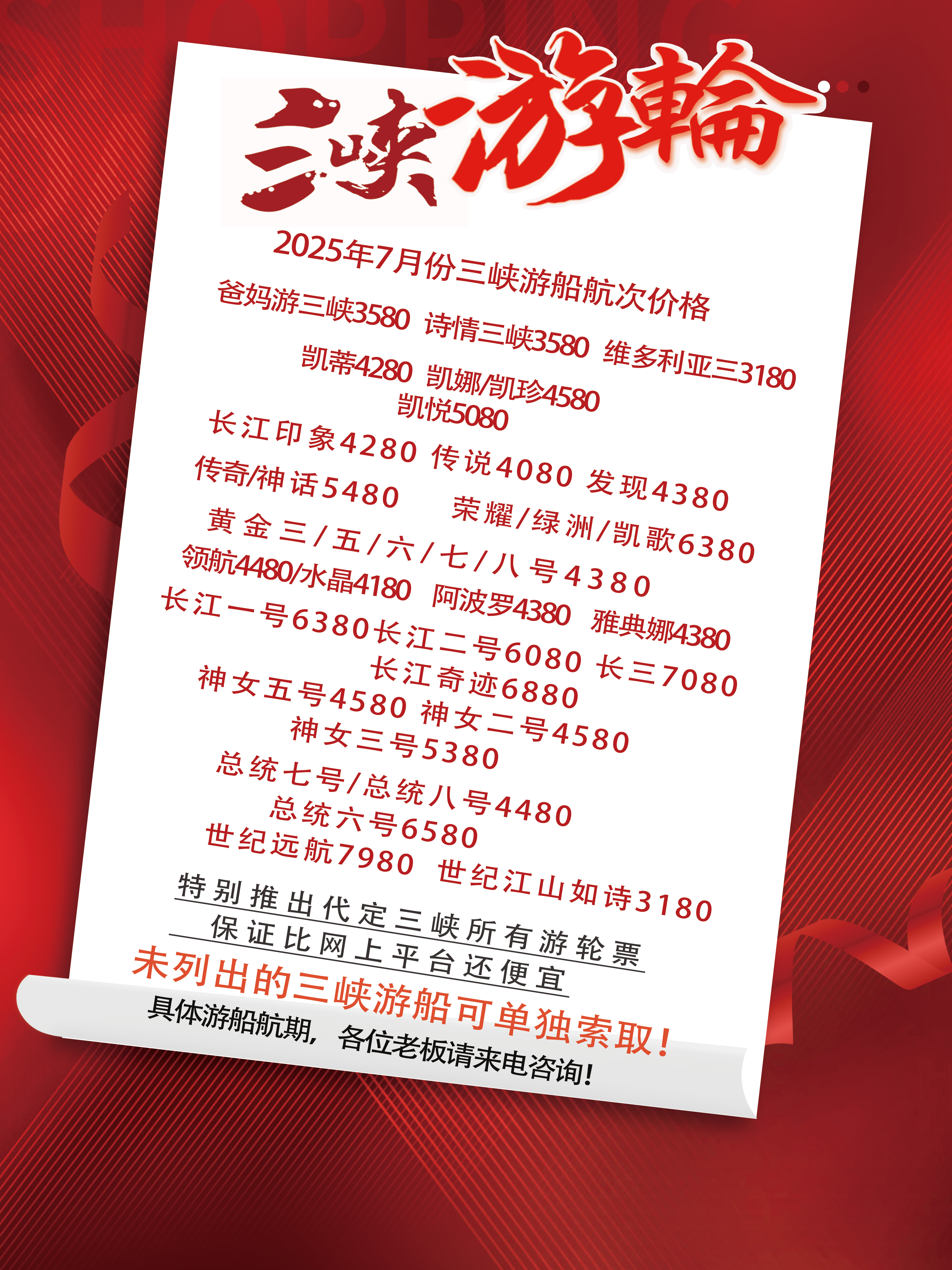 线路名称:长江三峡涉外豪华五星游轮汇总