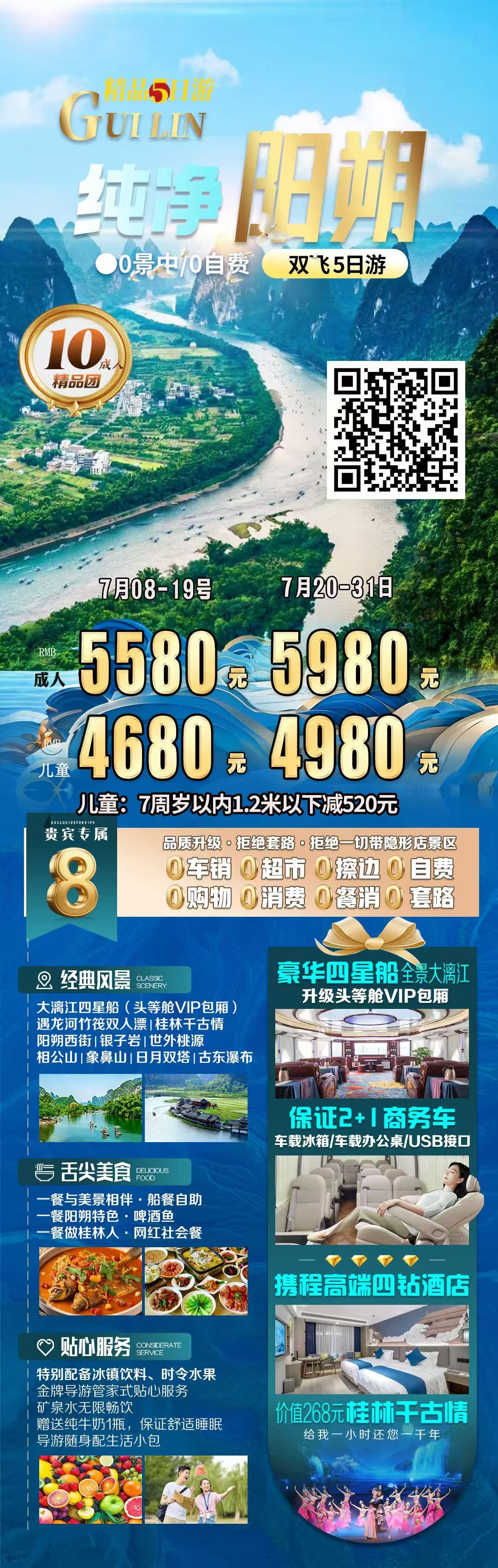 您预订的是:   【纯净阳朔】桂林双飞五天