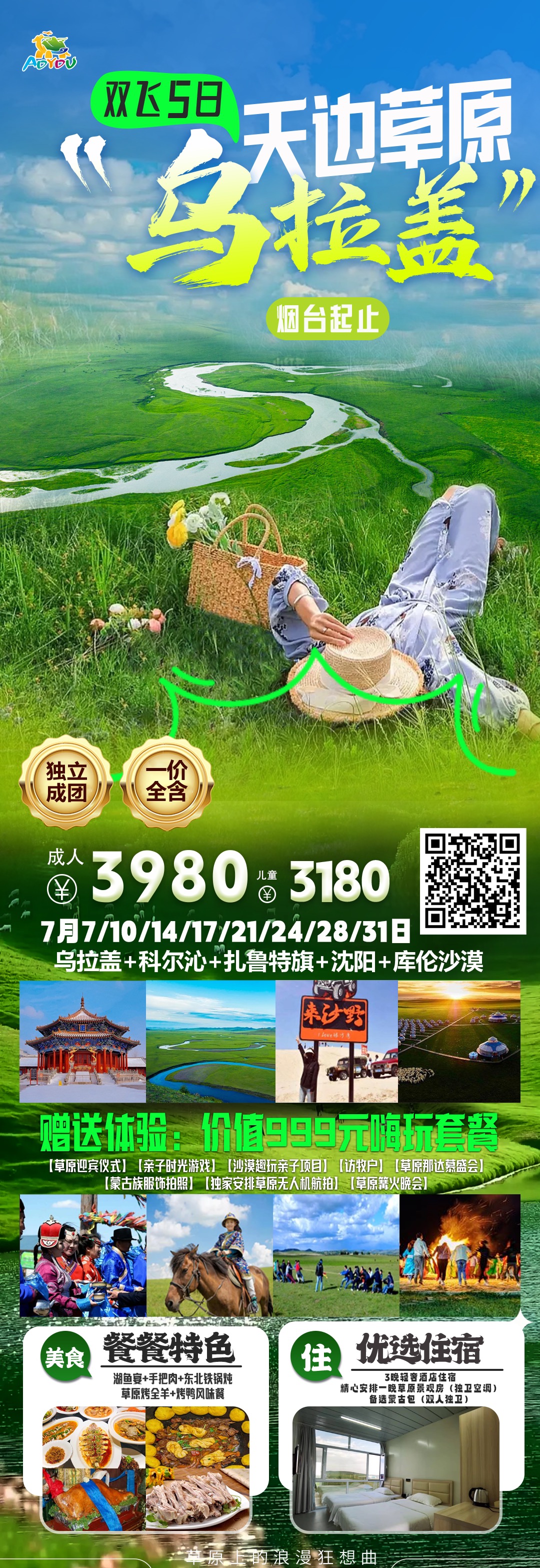 您预订的是:   【天边草原乌拉盖】双飞5天
