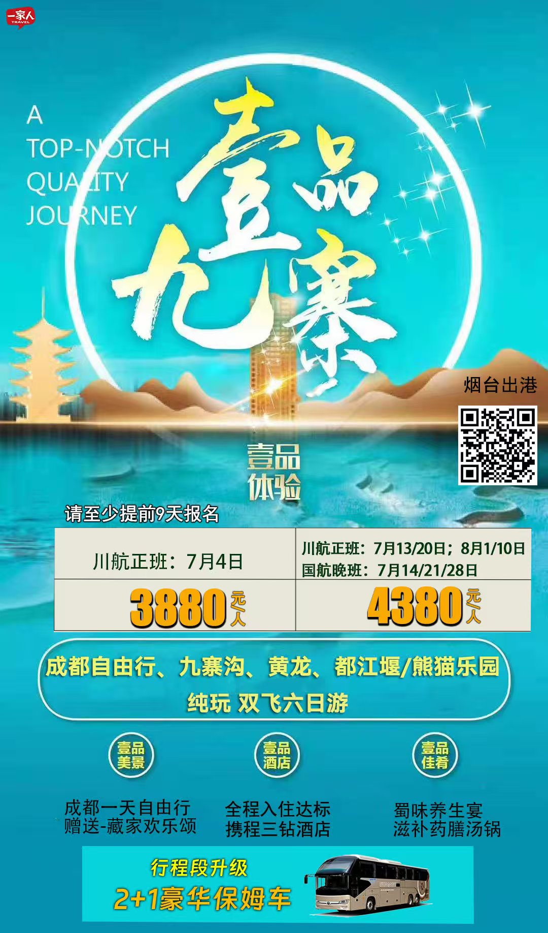 线路名称:纯玩💯半自由行【四川·一品九寨】双飞6天