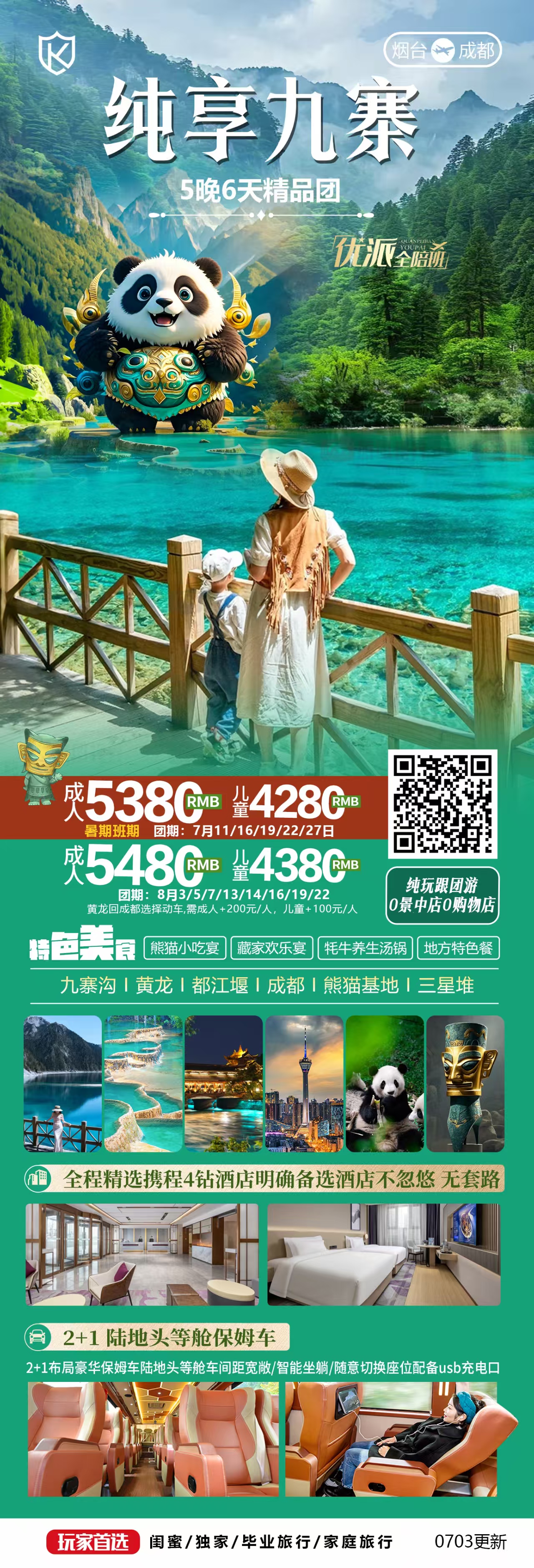 线路名称:暑期独立班纯享九寨双飞六天