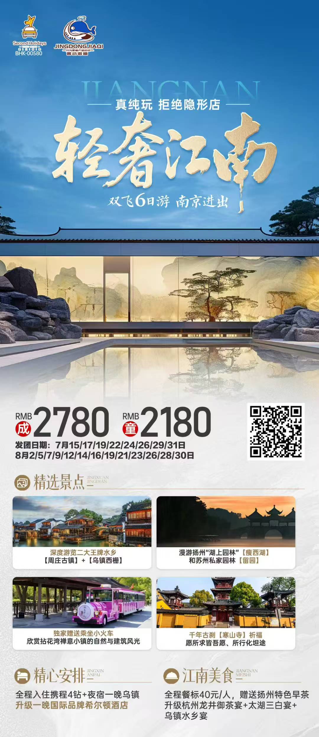 🍹全程餐标40,赠送扬州特色早茶,升级龙井御茶宴、江南水乡宴