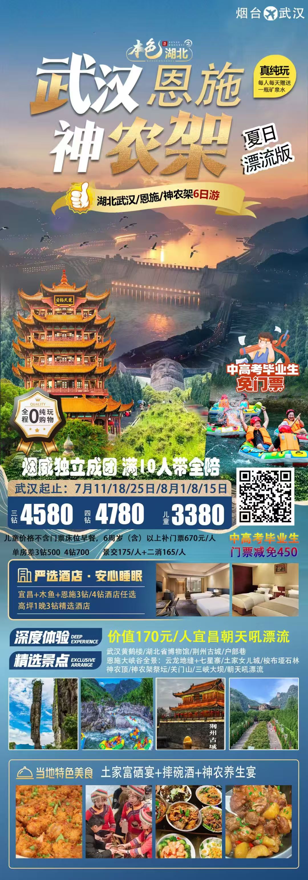 线路名称:武汉恩施神农架夏日漂流版(真纯玩)双飞六天