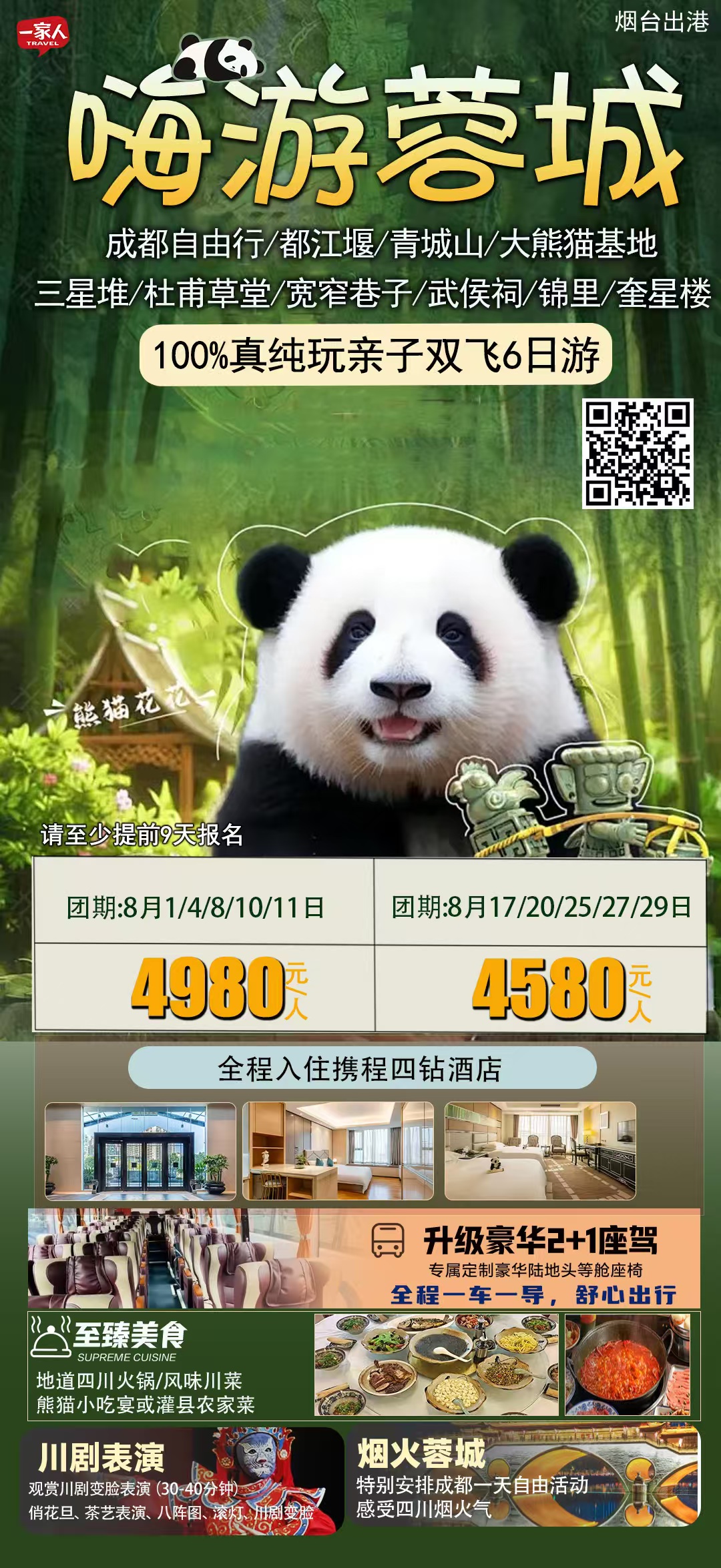 线路名称:💯真纯玩半自由行【四川·嗨游蓉城】双飞6天
