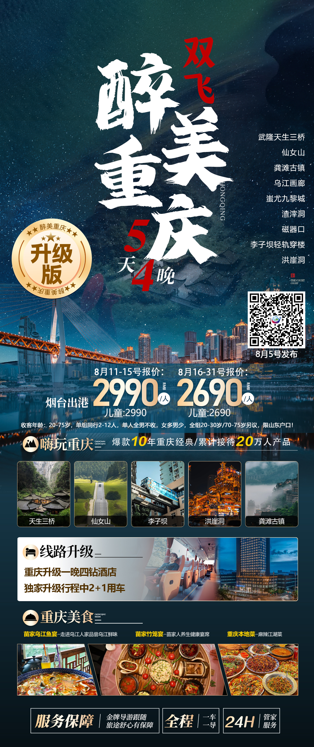 您预订的是:   🔥🔥🔥重磅升级 【醉美重庆】重庆双飞5日游