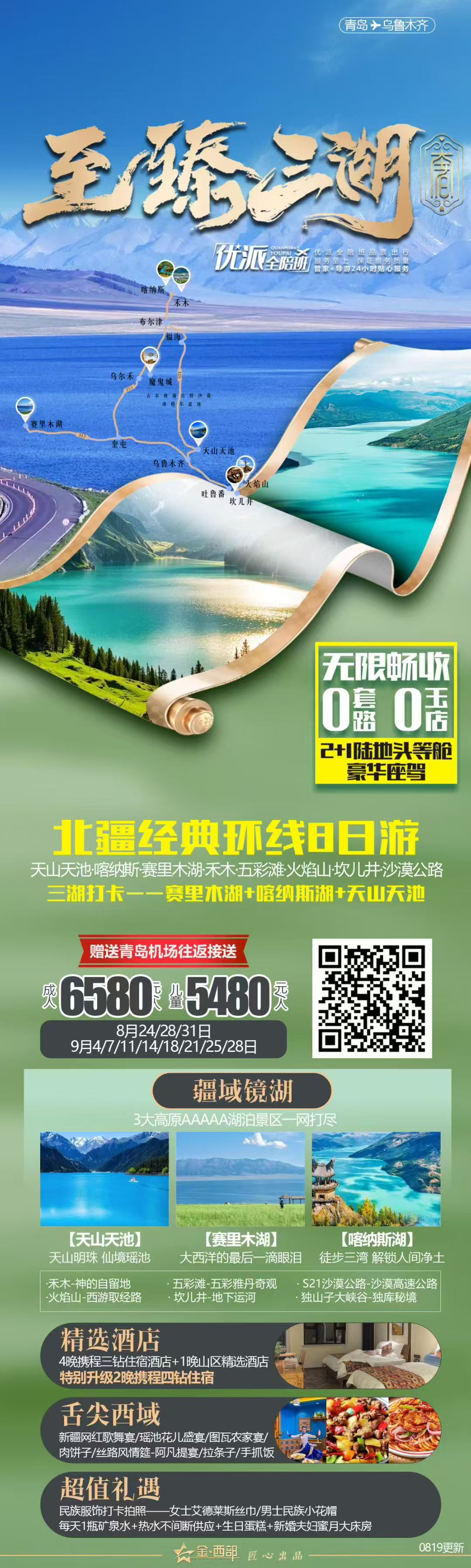 线路名称:✈️新疆【至臻三湖】双飞8日游