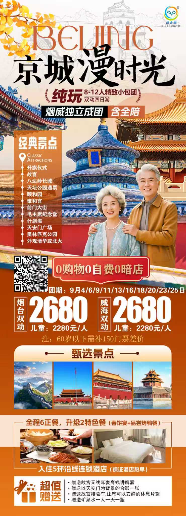 🔥最早可收9🈷️9【京城漫时光】双动4日游