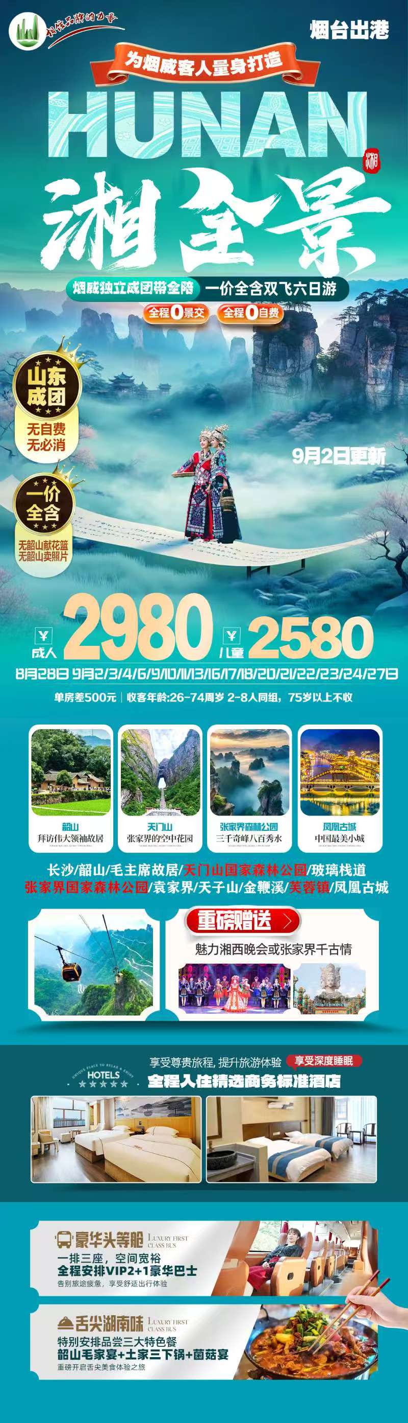 您预订的是:   烟台出港湘·全景湖南双飞六天