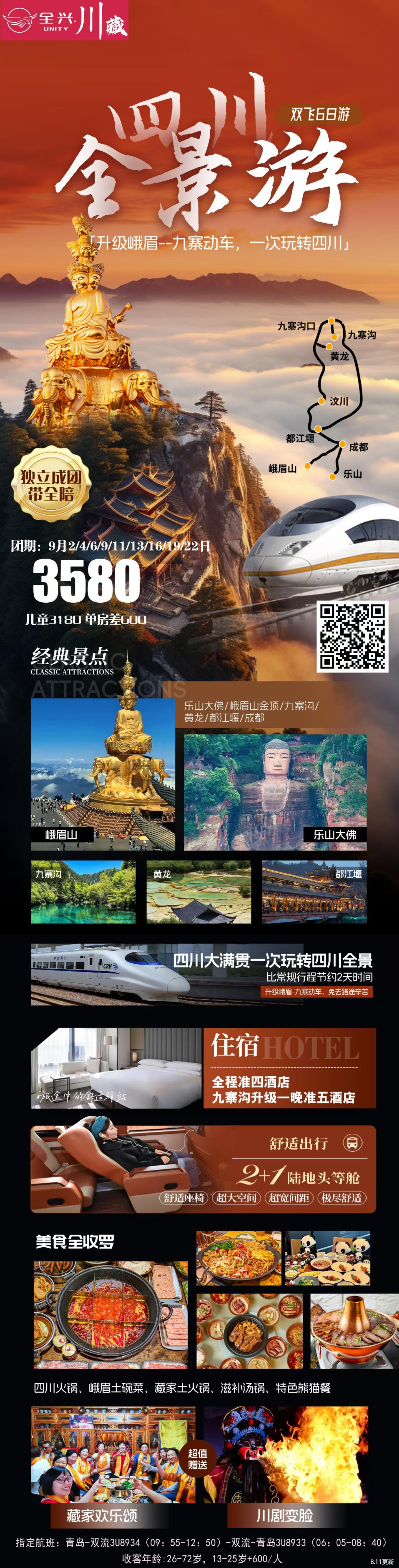 ✈9.19日独立班【四川全景游】 双飞一动6日游