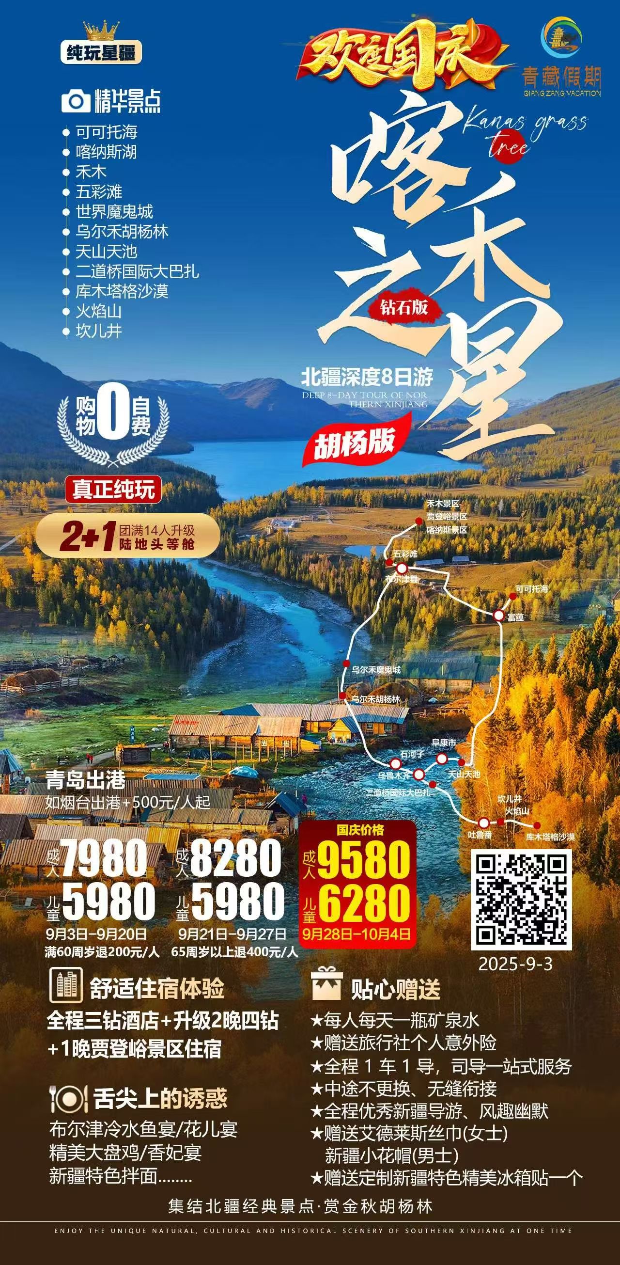 您预订的是:   喀禾之星北疆深度游双飞8天