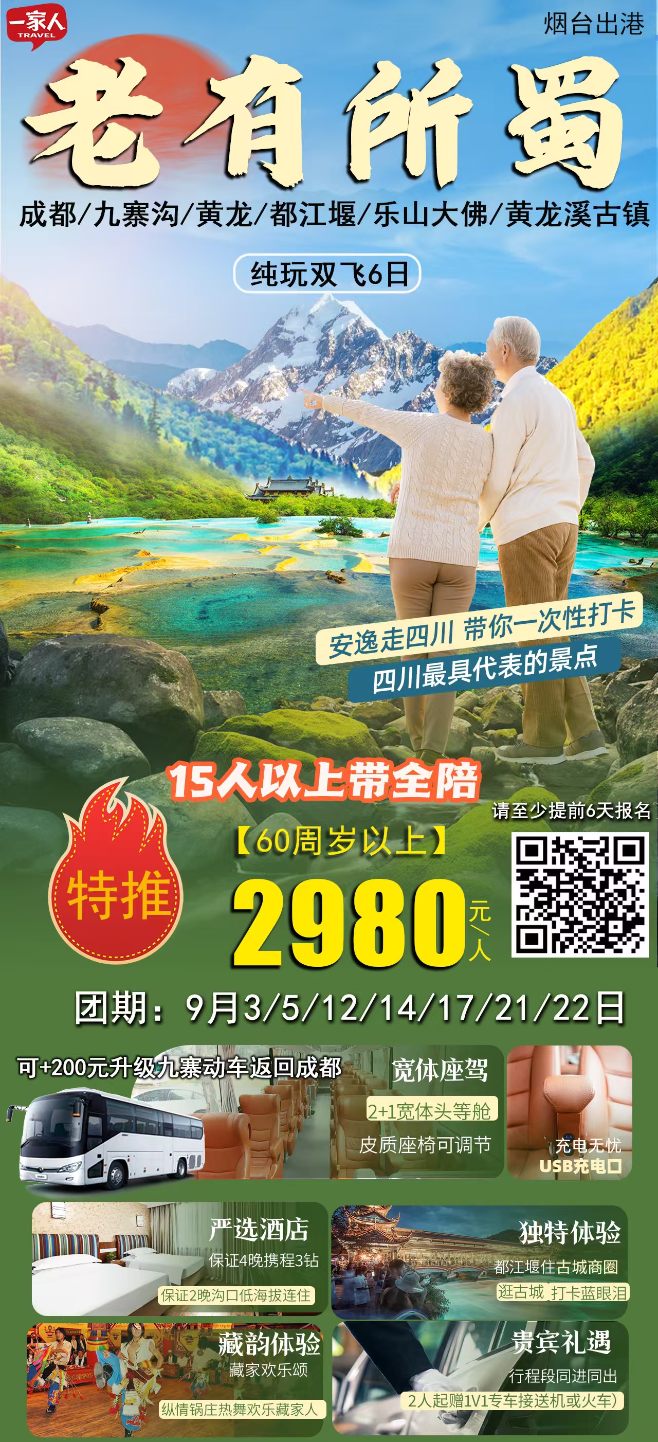 #烟台出港~2980元💥纯玩💯四川夕阳红老年欢乐游🟣