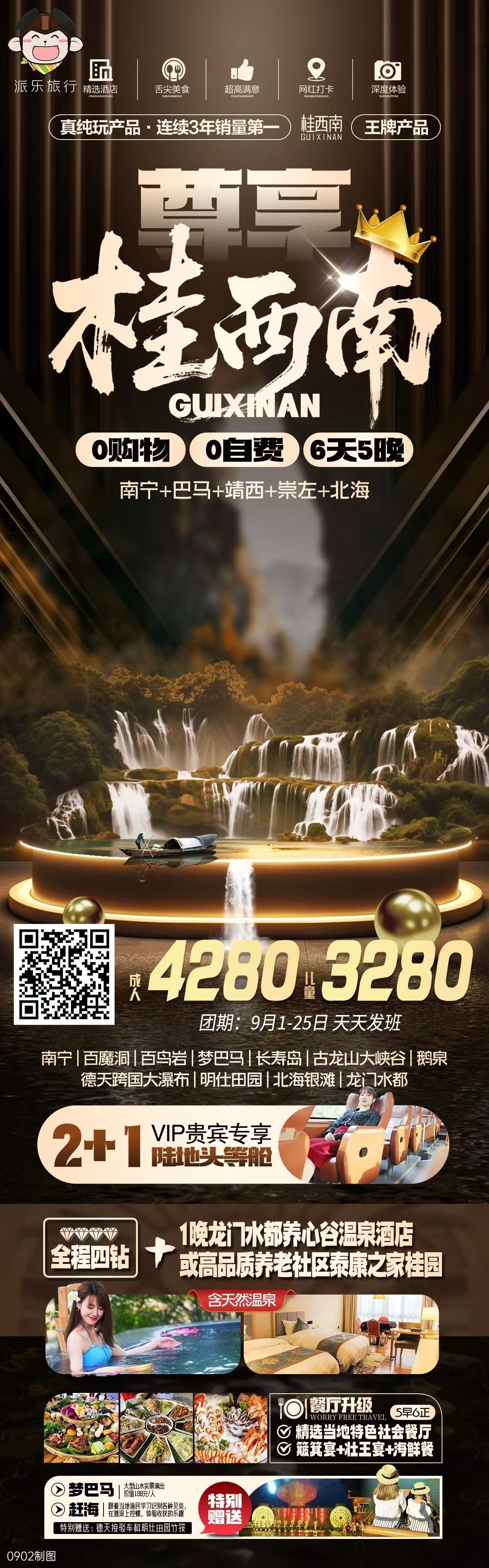 ⛵桂西南精华景点全程畅游,养生圣地百魔洞,百岛岩,长寿岛,梦·巴马,篝火晚会,跨国德天大瀑布,古龙山大峡谷,鹅泉,龙门水都;