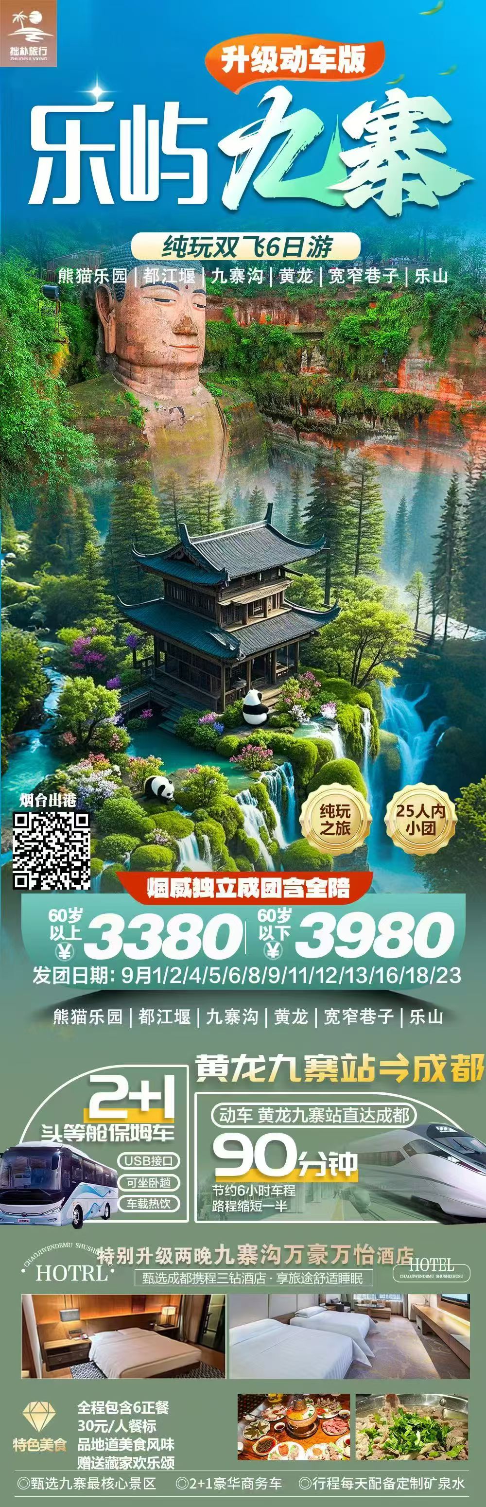 ⛰九寨沟➕黄龙➕都江堰➕熊猫基地➕宽窄巷子➕乐山大佛