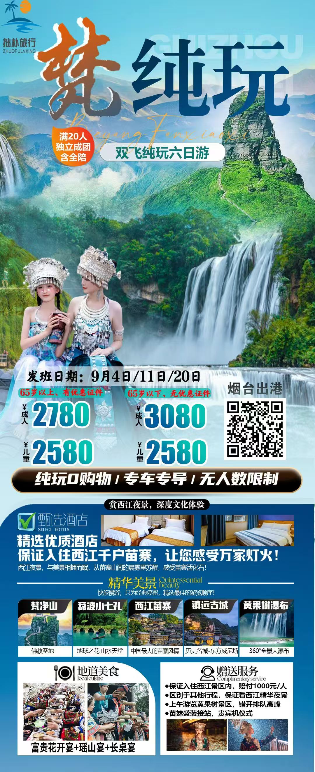 线路名称:烟台出港贵州·梵纯玩双飞6日游