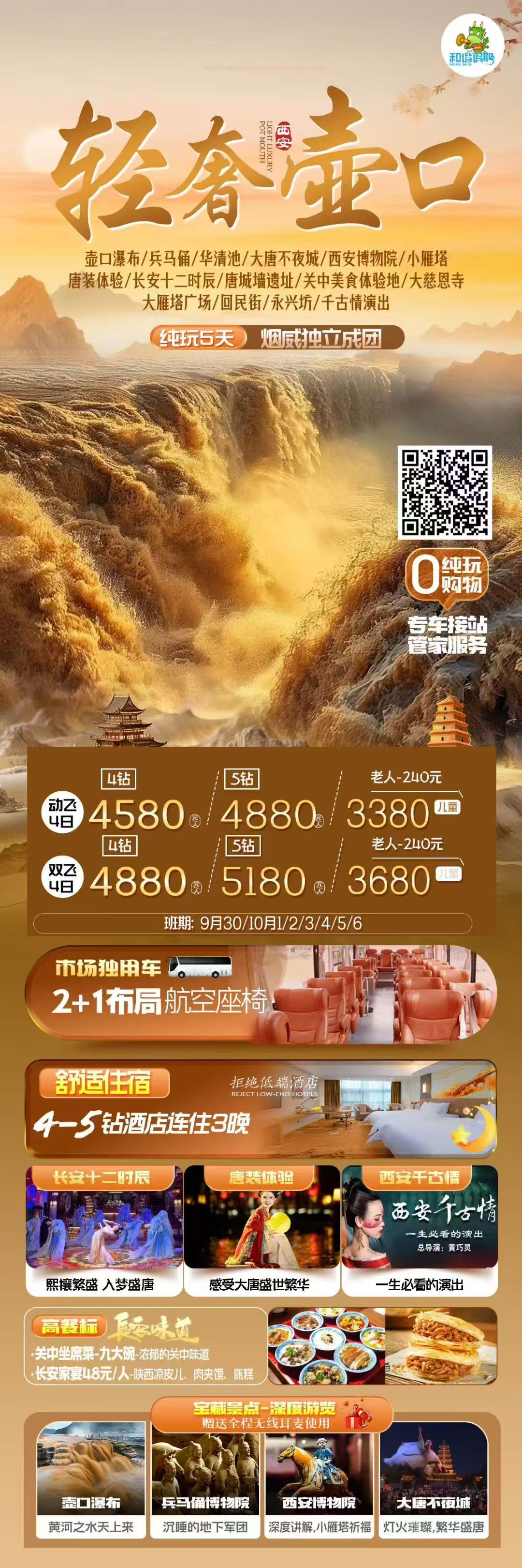 线路名称:国庆烟威独立班【轻奢壶口】动飞四天