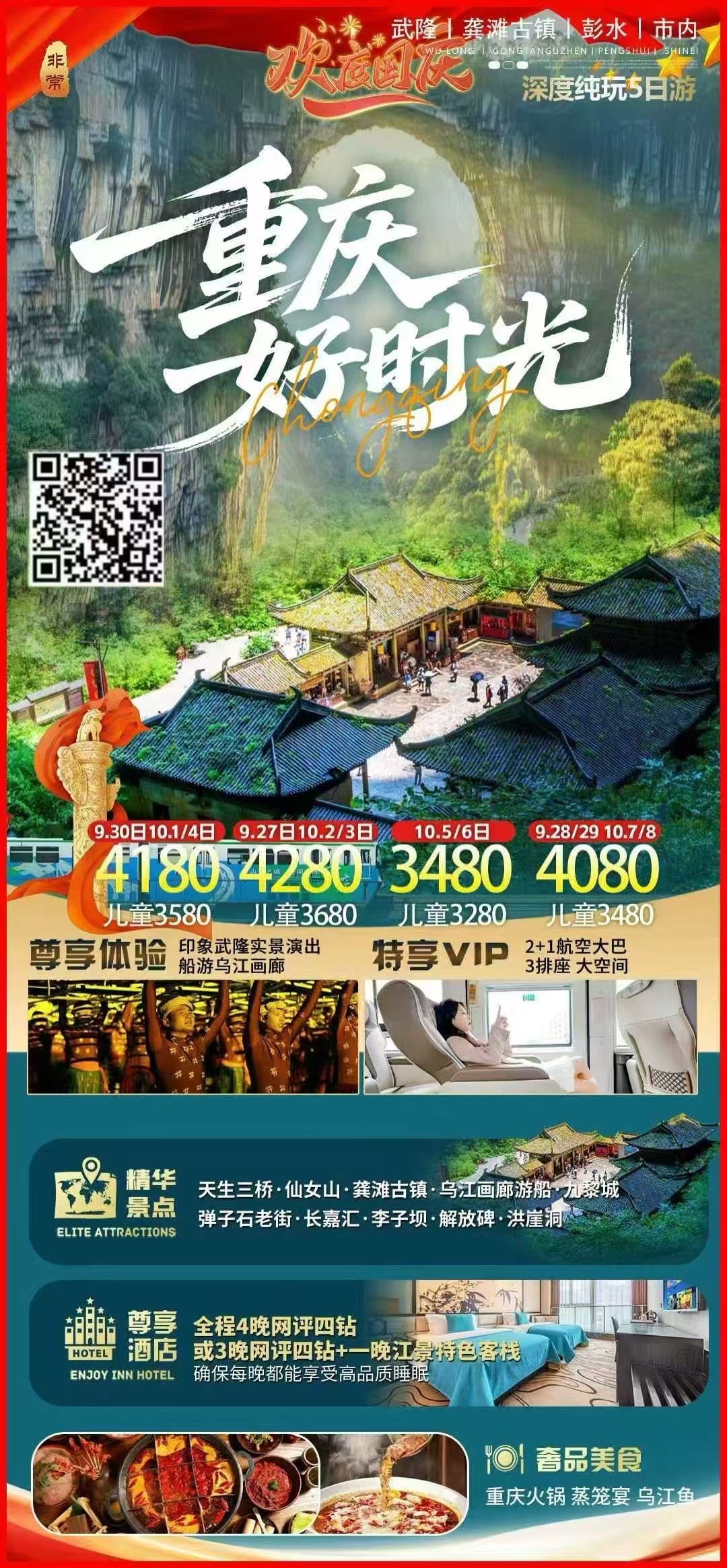 线路名称:📣欢度国庆【重庆好时光】重庆双飞五天