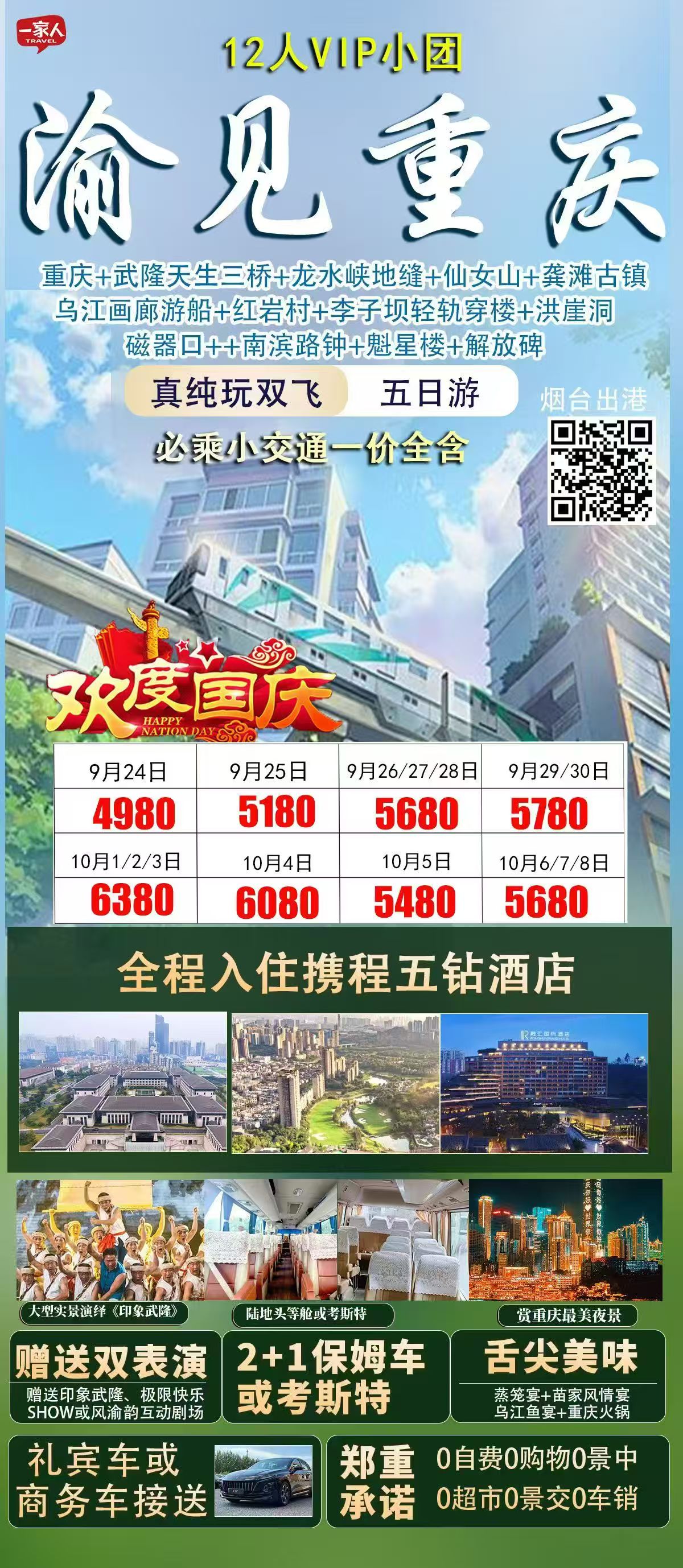 🇨🇳十一[庆祝]国庆节🇨🇳12人内VIP小团+五钻奢华💯纯玩【渝见重庆】双飞5日游(‼️有导游)