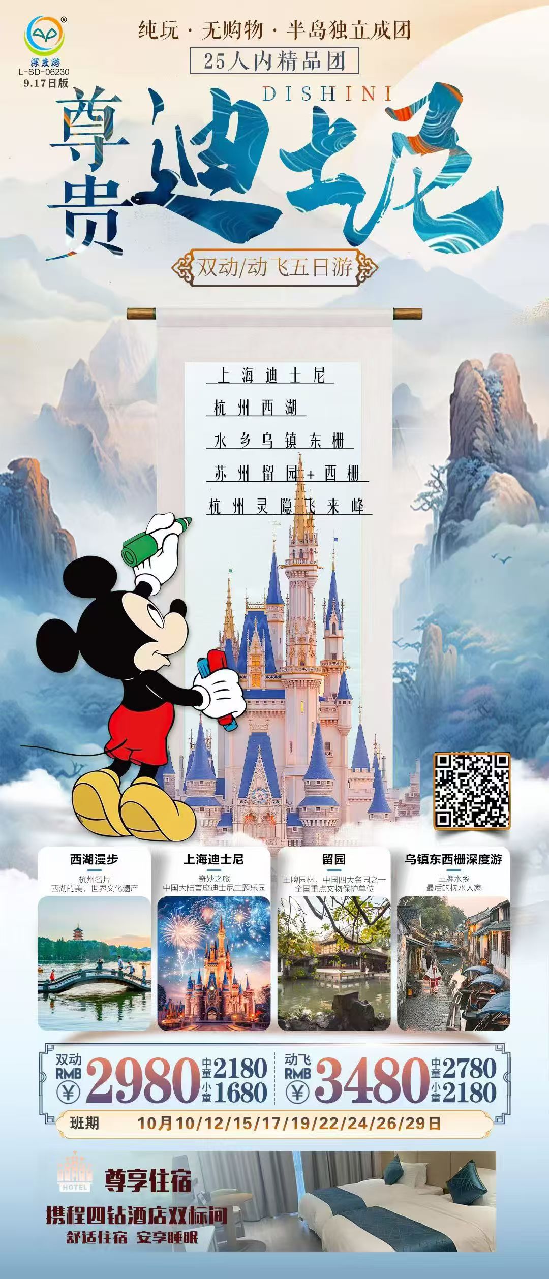 [爱心]【尊贵迪士尼】双动/动飞五日游