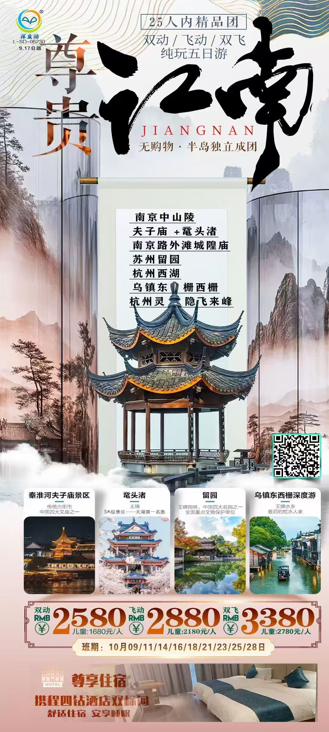 线路名称:【尊贵江南】飞动五日游