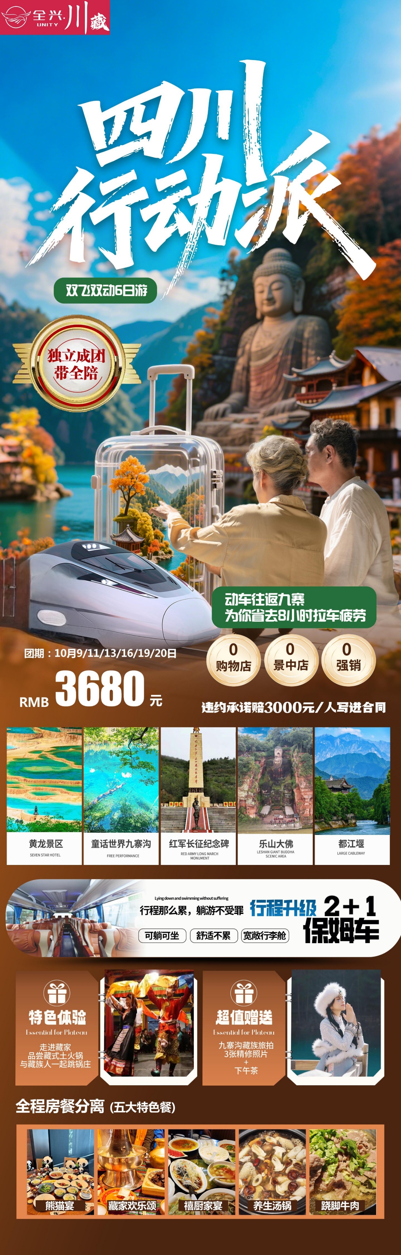 ✈10.19日【四川行动派】 双飞双动6日游