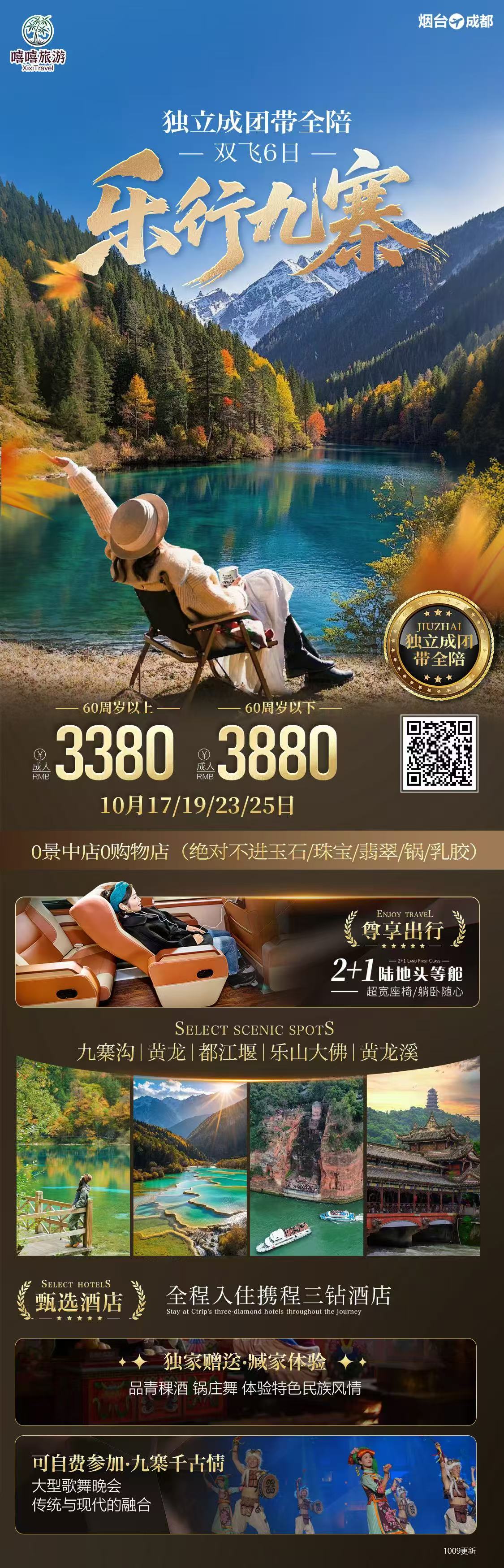 线路名称:【乐行九寨】成都+九寨+乐山+黄龙+黄龙溪6日
