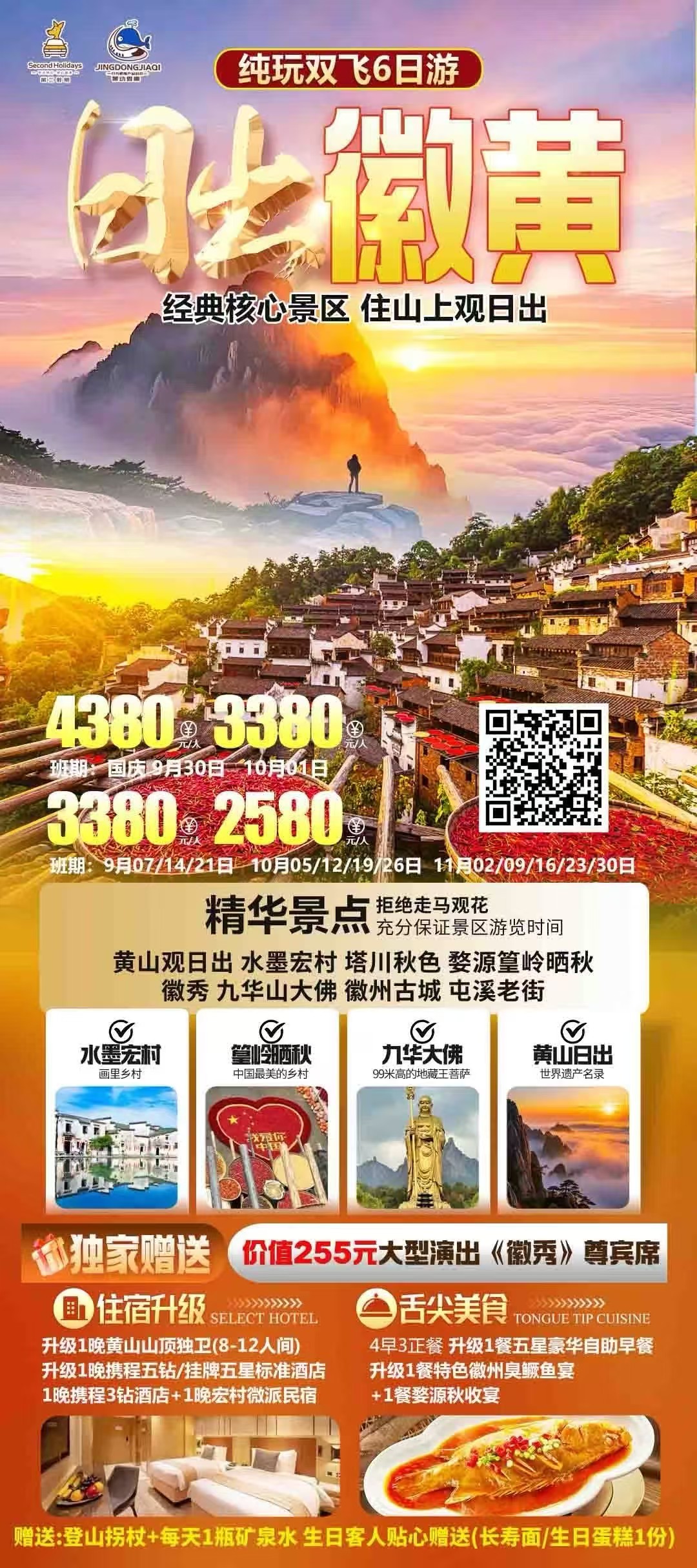 您预订的是:   ✈️皖风秋韵日出徽黄双飞六日游