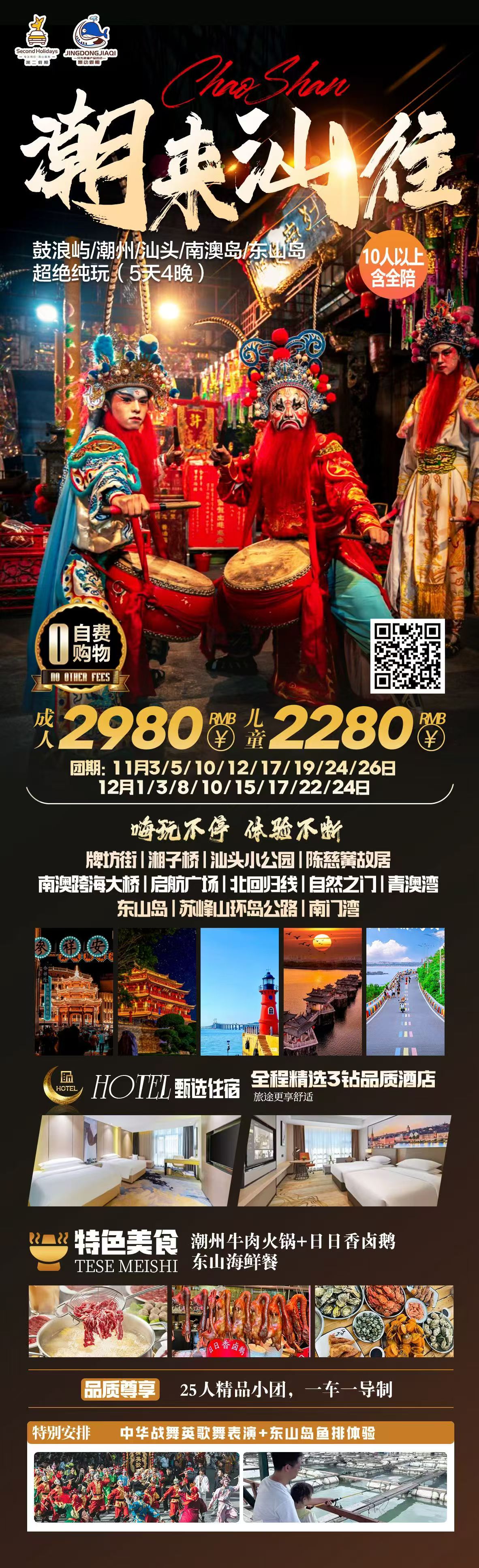 线路名称:✈️【潮来汕往】纯玩双飞5日游