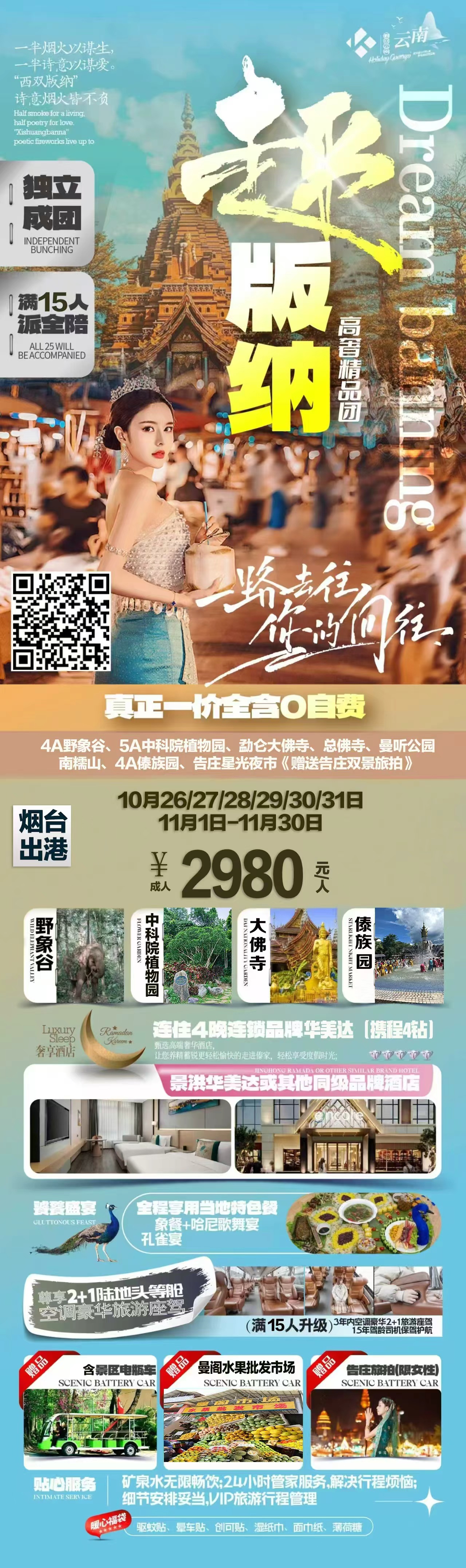 您预订的是:   【趣版纳】烟台直飞版纳独立班双飞六天