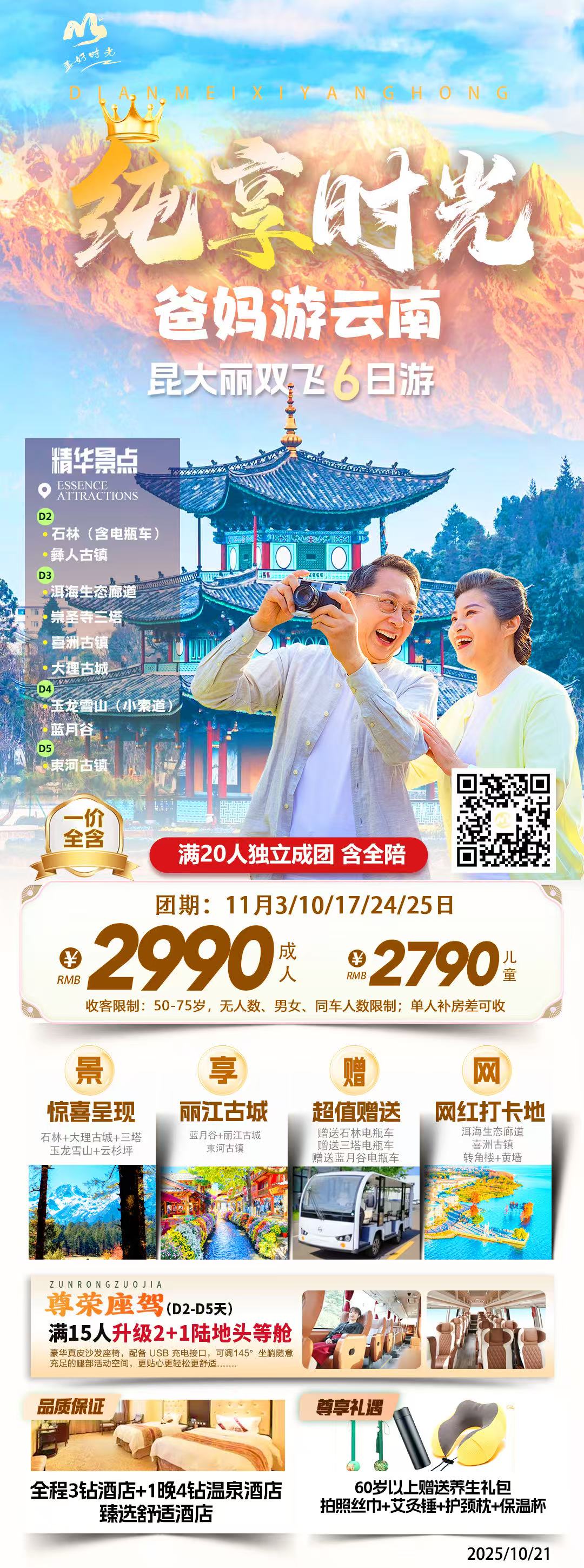 线路名称:👵👴纯享时光·爸妈游云南 💁昆明大理丽江纯玩双飞6日