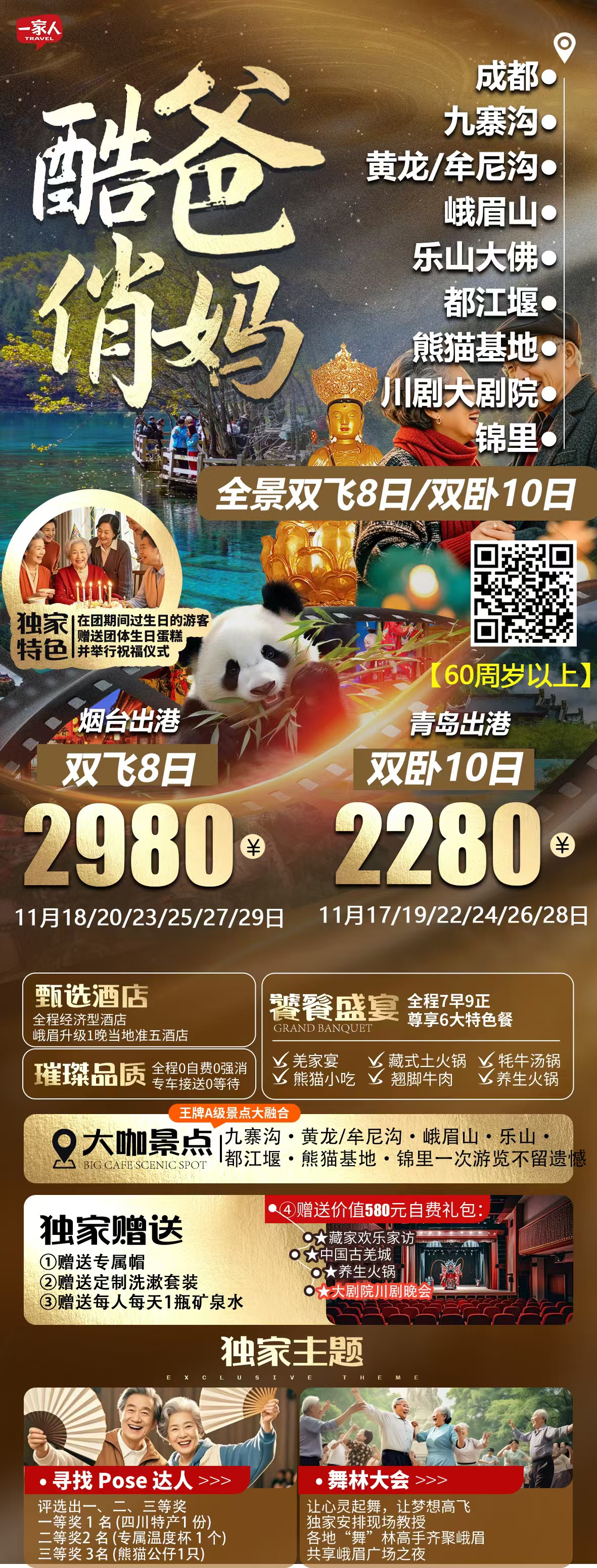 11🈷️#四川全景老年夕阳红【酷爸俏妈双飞8日/双卧10日】