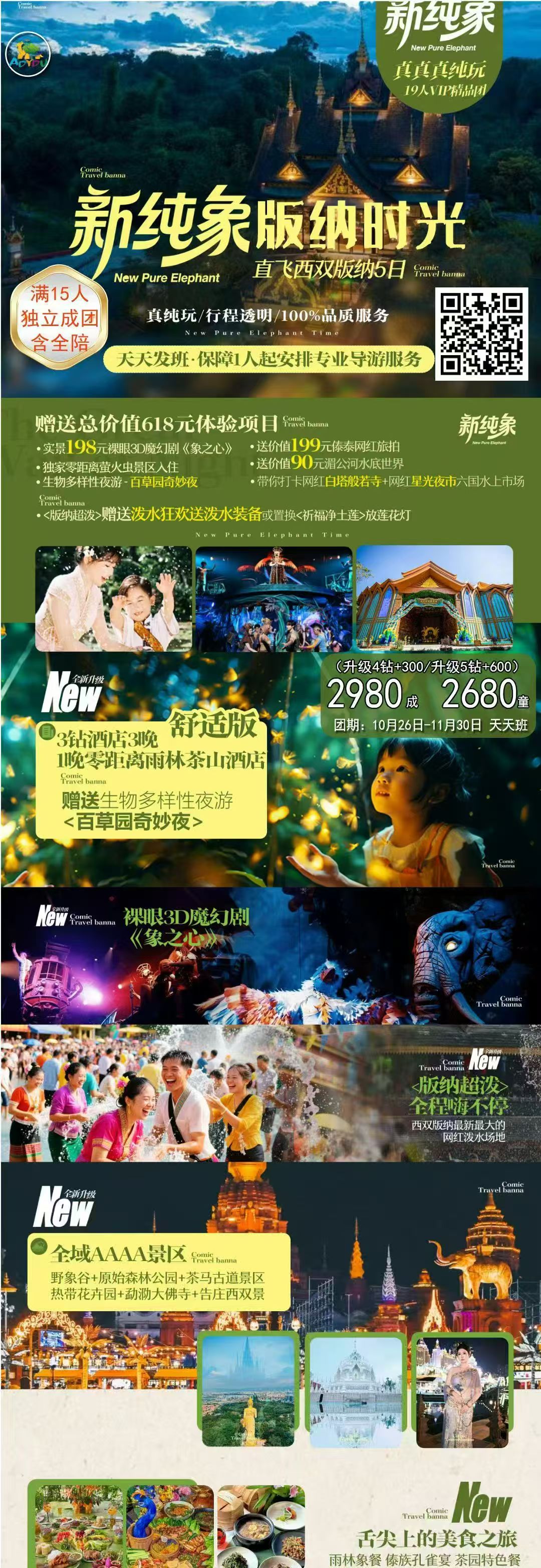 3D魔幻剧【象之心】/傣泰网红旅拍/湄公河水底世界/生物多样性夜游/网红般若寺/星光夜市/六国水上市场
