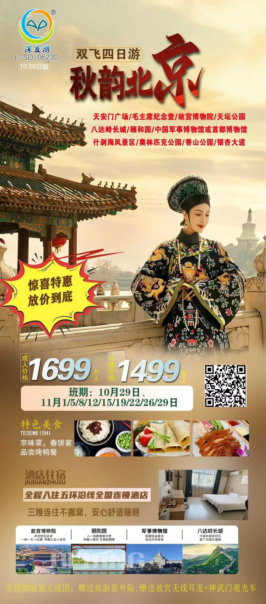您预订的是:   ✈️秋韵北京双飞四日游