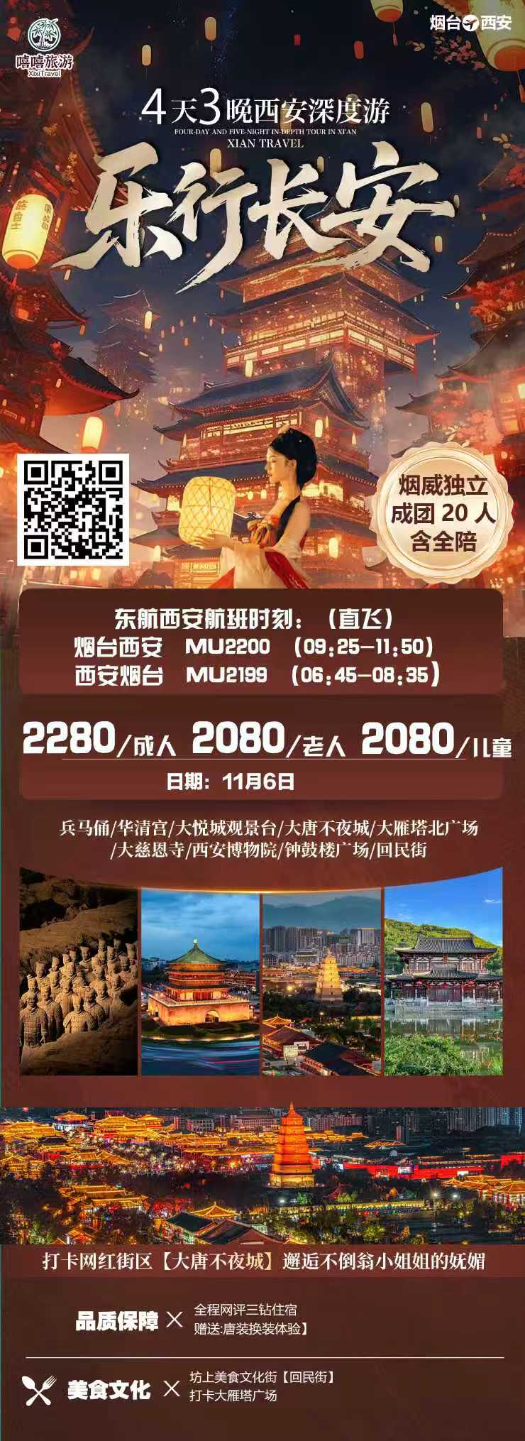线路名称:【乐行长安】烟威独立班四天三晚西安深度游