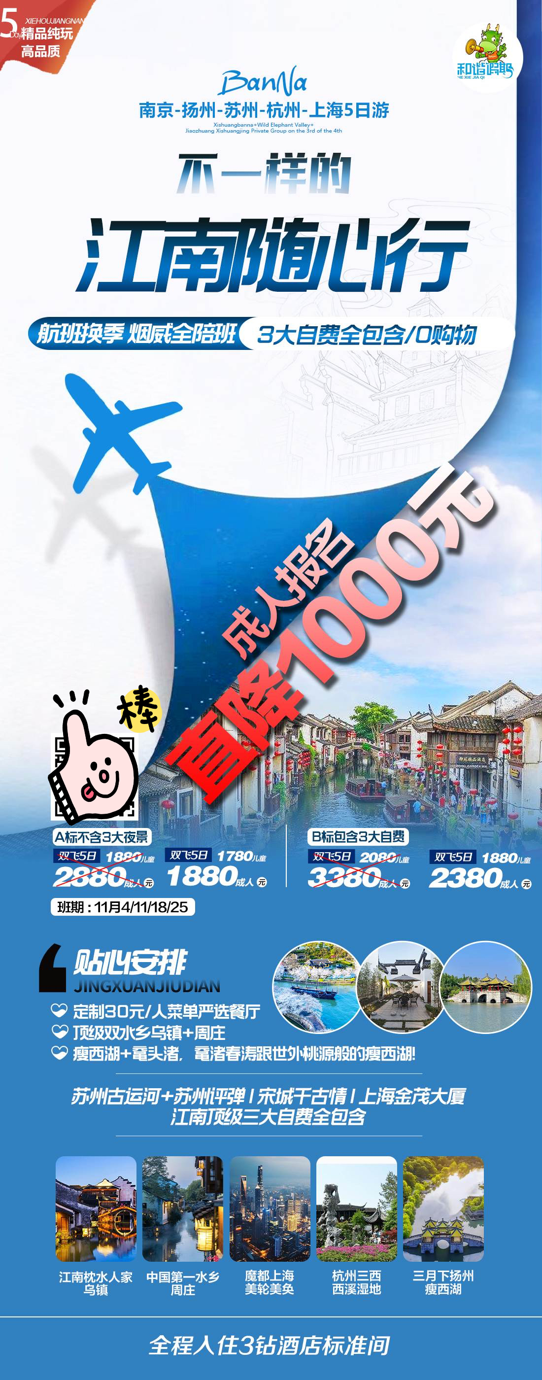 ⛵️B标三大景点全含:畅游苏州古运河、一生必看的演出宋城千古情夜秀、上海登88层金茂大厦